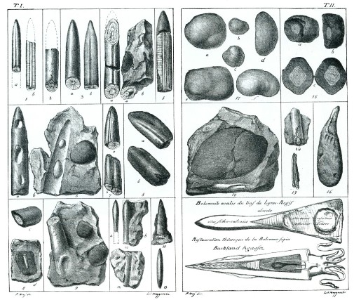 In un opuscolo di venti pagine di P.C. Vimercati Sozzi del 1846 le tavole I e II raffigurano le belemniti di Entratico
