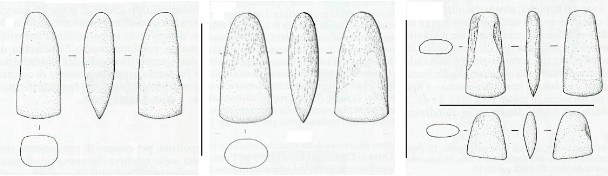 Una delle asce, di forma trapezoidale e di ridotte e dimensioni e quindi non funzionale, è in giadeite, un materiale esistente nelle Alpi piemontesi meridioed esportato, a partire dal Neolitico, fino in Bri(8), a testimonianza della diffusione su lunghe distanze del commercio di prodotti finiti e di materia prima.