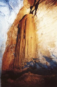 Purtroppo l'estensione al suolo della concrezione non esiste più, perché è stato asportato da vari e maldestri scavi che hanno fruttato il ritrovamento al piede della cascata di numerosi resti ossei umani.