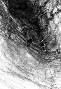 Un volta la concrezione si estendeva anche sul pavimento proteggendo gli strati contenenti ossa umane, le uniche trovate nella grotta. Le altre foto ricordano alcune fasi esplorative della cavità.